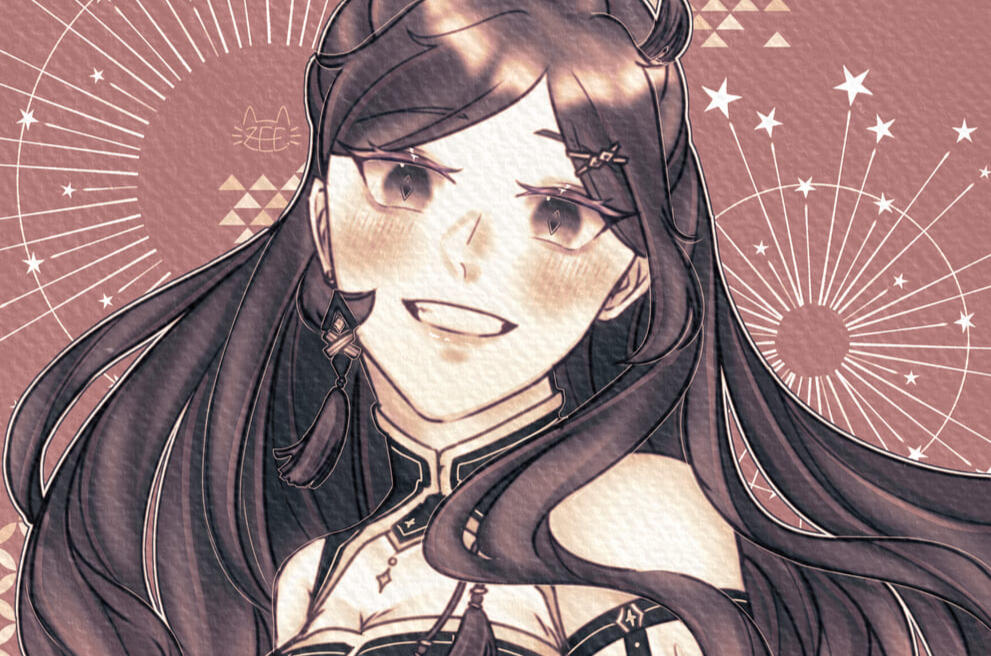 | Regular Iced Latte Macchiato | 85k/canvas, detailed characters will be charged with additional fee. | bust-up single gradient-colored sketch. |